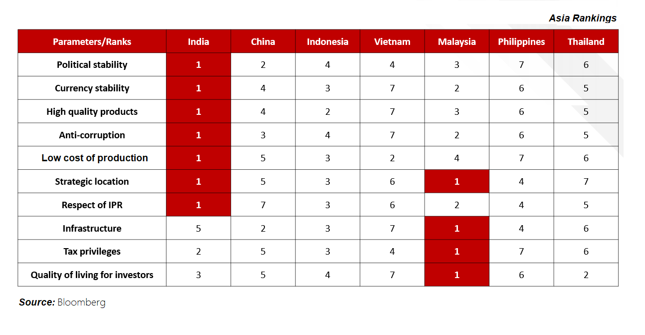 - India is politically stable and offers good incentives to investors and partners. With greater stability in currency fluctuations, long term investments are more certain and risk free than ever.
